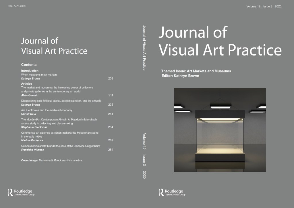 The special issue that I edited for the Journal of Visual Art Practice (Vol. 19, Issue 3, October 2020) contains my Introduction (‘When Museums Meet Markets‘) and my article: ‘Disappearing Acts: Fictitious Capital, Aesthetic Atheism, and the Artworld).